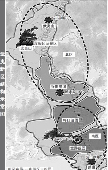 《武夷新區(qū)城市總體規(guī)劃(2010-2030)》已獲省政府批準(zhǔn),根據(jù)規(guī)劃,武夷新區(qū)總占地面積4132平方公里,其中新城占地面積380平方公里,包括童游、將口和興田三個組團,是武夷新區(qū)重點建設(shè)區(qū)域。
