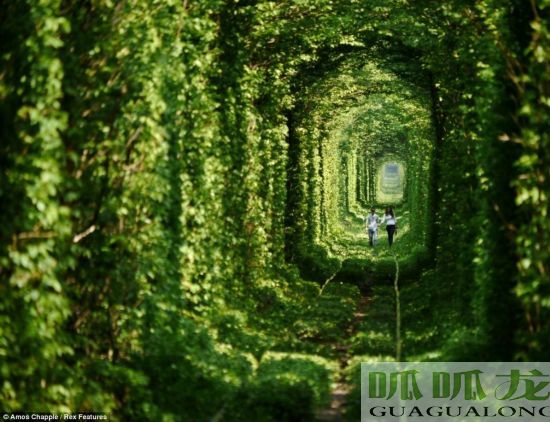 烏克蘭,Klevan小鎮(zhèn),愛之隧道。春天一到兩旁的樹木一片蔥綠,架起了一座綠色的“拱橋”,這一夢境般的隧道其實是一個私營鐵路附近的纖維板廠。