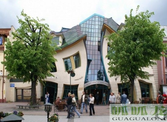 波蘭,索波特,歪房子。房子如同一幅畫被壓扁了一樣,又看似要“融化”了一般,它大膽而創(chuàng)新的建筑風格讓人稱奇。