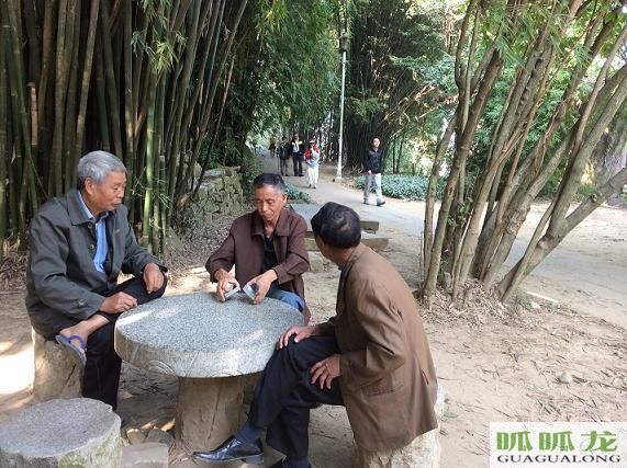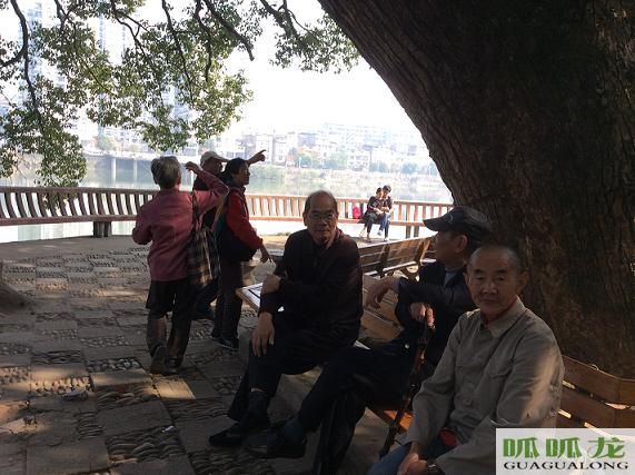 滄浪閣旁,千年古樟下,老人、青年享蔭賞陽、悠然自得。