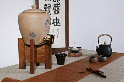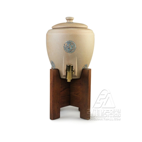 老巖泥采用自然風(fēng)化的砂礦石為原料,不斷的試窯創(chuàng)作,多次高溫氧化、還原多重?zé)贫。弘建老巖泥土質(zhì)天然,故每件作品皆呈現(xiàn)色澤不一。以龍泉釉繪方式繪制而成,成品又具官窯釉冰裂效果,多層次工藝完成,質(zhì)感鮮明。具柴窯燒制特點(diǎn),本質(zhì)上保存陶制器具的特點(diǎn),燒成溫度1300℃以上,胚體原始樸拙、自然的質(zhì)感。其鐵等礦物質(zhì)含量極高,具有軟化水質(zhì)的功能,使茶湯喉韻倍增、入口自然、回甘好。