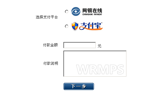 1、選擇付款平臺:網(wǎng)銀在線或支付寶。